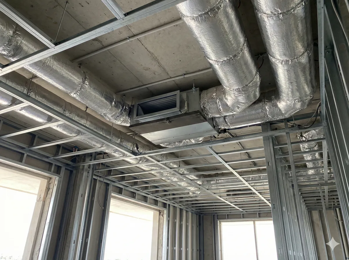 Climatizare “Invizibilă”: Am instalat un sistem multisplit de tip duct (tubulatură) ascuns complet în tavanele false. Distribuția aerului s-a realizat prin difuzoare liniare discrete, vopsite în culoarea tavanului, devenind practic invizibile.